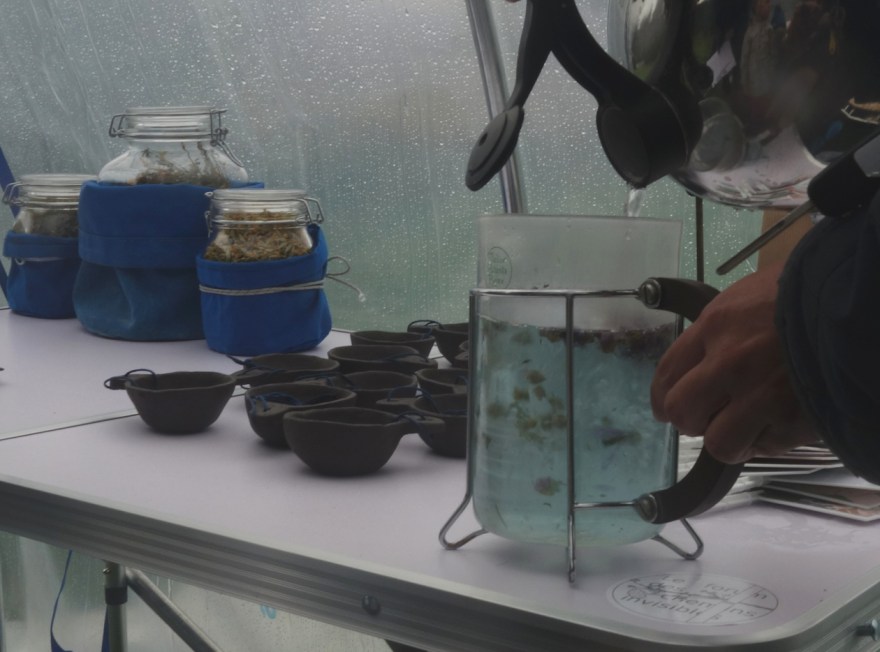 Serre horticole, tv portables, matériel de camping, questionnaires, infusion de plantes sauvages, enceinte portable, tasses céramique (fabrication Sophie Lytka). Le forum des chemins invisibles est une installation dont la forme est à mi-chemin entre la serre horticole et le camp de base d’une expédition dont le programme serait l’exploration sur le territoire des caps et marais d’opale des plantes sauvages qui y poussent. Il y est question de cueillette, de transformation, d’histoires vraies et de mots racontés, de recettes, de potions , de partage de savoir et de sorcellerie. Si l’aventure rapportée fait la part belle à la fiction, il en reste l’ébauche non moins réelle d’une tentative de transmission , répertoire et cartographie de ces plantes, chemins et hommes rencontrés. Avec le soutien de la Drac Hauts-de-France.