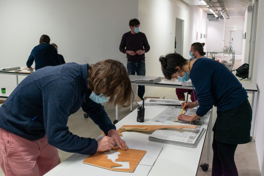 Impression offset sur papier UMP Sol MATT 70g/m2 et Ultra Square 70g/m2, typographie collaborative Avara, 52 pages, 2700 exemplaires, 42 x 59,4 cm Réalisé par Florence Bazin, Corine Caulier, Gilles Elie, Mélissa Godbille, Lucie Herlemont, Rébecca Konforti, Marion Lebbe, David Leleu, Galerie Rézeda, Michael Lilin, Philippe Lipka, Emmanuel Simon, Manon Thirriot et avec le regard de Julien Verhaeghe.